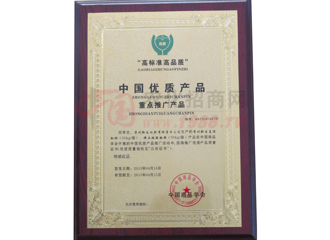 近年來(lái),公司又先后聯(lián)系國(guó)內(nèi)有關(guān)技術(shù)院校及省、市多家研究機(jī)構(gòu)以稀土為課題,共同開(kāi)發(fā)和研制出新一代多種含量的稀土專利產(chǎn)品,并在全國(guó)各地進(jìn)行了大量的試驗(yàn)和示范,效果顯著、用戶認(rèn)可。在大量的對(duì)比示范中,稀土肥料不但能大幅度降低農(nóng)民朋友的投資成本;而且還能大大提高農(nóng)產(chǎn)品的品質(zhì),深受廣大農(nóng)民朋友青瞇和認(rèn)可。黔發(fā)系列稀土專利產(chǎn)品連續(xù)多年來(lái),一直被貴州省列為綠色高效農(nóng)業(yè)示范工程、國(guó)家星火項(xiàng)目產(chǎn)品。并先后獲得了“名優(yōu)產(chǎn)品”“品牌”“貴州省消費(fèi)者信得過(guò)產(chǎn)品”“3、15全國(guó)質(zhì)量放心消費(fèi)聯(lián)盟品牌”“第十九屆楊凌后稷金像獎(jiǎng)特別獎(jiǎng)”等殊榮。